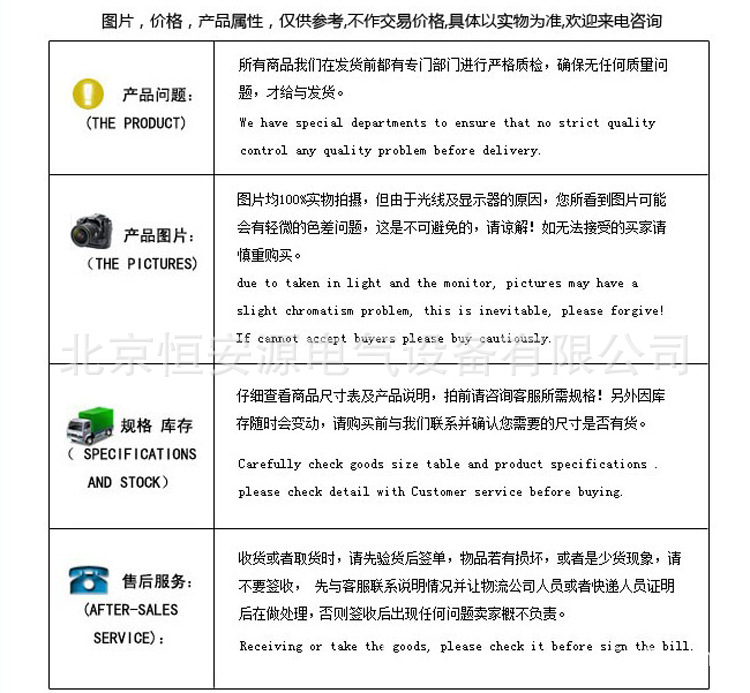 1.我公司對(duì)生產(chǎn)的全部產(chǎn)品實(shí)行“三包”,保證產(chǎn)品采用較佳材料和一流工藝,符合合同規(guī)定的質(zhì)量﹑規(guī)定和性能要求。保證其合同設(shè)備經(jīng)過(guò)正確安裝﹑合理操作和維護(hù)保養(yǎng),在合同設(shè)備使用期內(nèi)運(yùn)轉(zhuǎn)良好,在規(guī)定的質(zhì)量保證期內(nèi),對(duì)由于設(shè)計(jì)工藝或材料的缺陷而造成的故障負(fù)責(zé),免費(fèi)負(fù)責(zé)修理或更換有缺陷的電器元件。