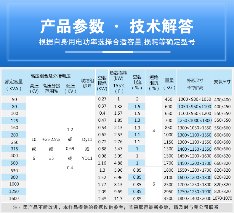 【額定容量】:50~2500kva 【額定電壓】:10/6