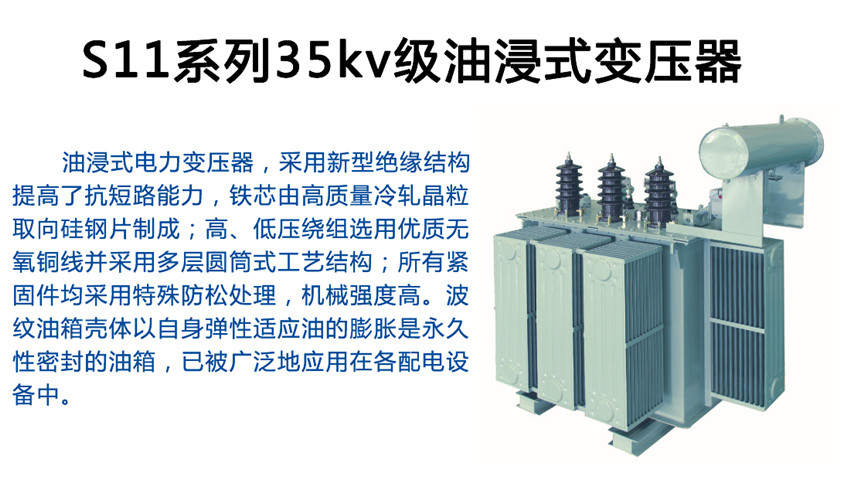 油浸式電力變壓器,采用新型絕緣結(jié)構(gòu),提高了抗短路能力,鐵芯由高質(zhì)量冷軋晶粒取向硅鋼片制成;高、低壓繞組選用優(yōu)質(zhì)無氧銅線并采用多層圓筒式工藝結(jié)構(gòu);所有緊固件均采用特殊防松處理,機(jī)械強(qiáng)度高。波紋油箱殼體以自身彈性適應(yīng)油的膨脹是永久性密封的油箱,已被廣泛地應(yīng)用在各配電設(shè)備中。